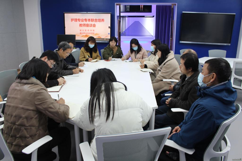 刘涛对我校专科段的护理人才培养与专业建设成效给予肯定,黄享苟对湖北医药学院多年以来的支持指导表示感谢。双方表示,未来两校间将深入开展教学、科研、教师互派等方面的合作,充分发挥两校本科与高职不同层次护理专业品牌与基地、课程等建设优势,将专本联合培养试点项目做出特色,力求在职普融通和深化现代职业教育体系改革方面做出新的探索。