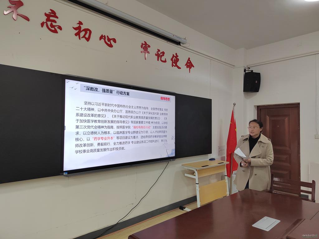 为全面贯彻学校第三次党代会精神,落实学校2023年教职工大会工作要求,加快推进教育教学改革,努力在提高教育教学水平上实现新突破,3月29日下午,医学院在立新楼党员活动室开展了“深教改 强质量”课堂革命教研活动交流会。医学院班子成员及教职工参加会了议。学校教学督导专员邹忠武、罗萍参会并进行了指导,医学院副院长陈军芳主持会议。