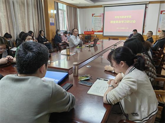 (本网讯 马江浩)4月12日下午,财经与旅游学院在西区文华楼2楼会议室开展“课堂革命”学习研讨会。会议由财经与旅游学院院长徐斌华主持,学院全体教职工参加。