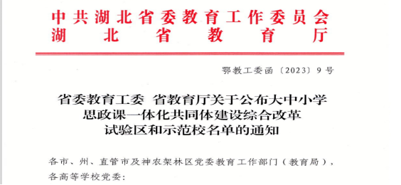 4月19日,根据《省委教育工委省教育厅关于公布大中小学思政课一体化共同体建设综合改革试验区和示范校名单的通知》精神,孝感市教育局等13个地方为大中小学思政课一体化共同体建设综合改革实验区;九州线上平台入选孝感市大中小学思政课一体化共同体建设综合改革试验区成员单位。