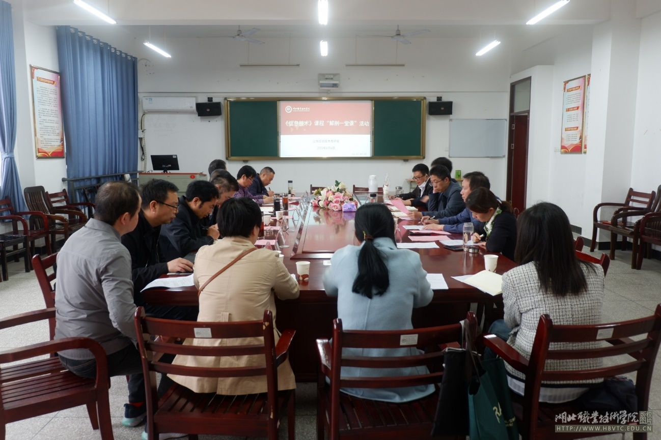 活动第一阶段,在天工楼7B601机房听了熊艳红老师讲授的《信息技术》课程,并组织学生现场问卷评价。活动第二阶段,在知行楼8208会议室进行深入解剖和研讨,魏华、王亮、李岚、熊世明、邹忠武、董协平、龚洪浪等从教案、教学资源、教学内容、教学设计、教学方法、岗课赛证、课程思政等进行了深入剖析,并提出了诊断建议。