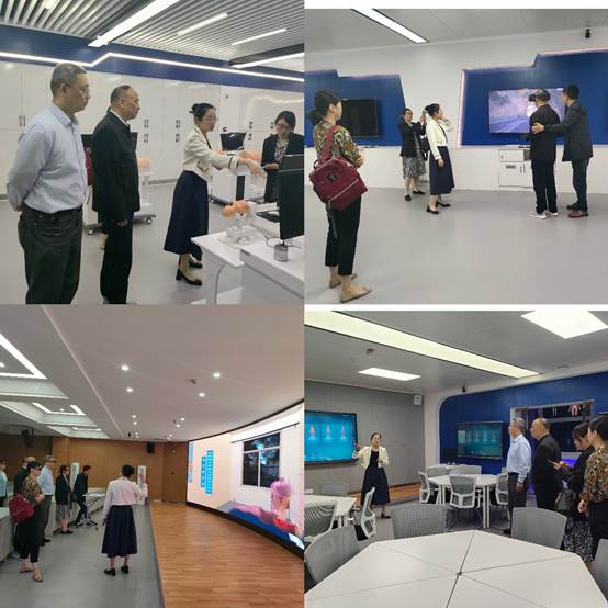 随后,周涛一行先后参观了我校护理虚拟仿真实训基地的智慧教学中心、互动体验中心、虚拟现实学习中心和虚实结合中心,分别体验了心肺复苏沉浸式3D立体虚拟仿真实训软件、灾难救护虚拟现实教学软件、分娩机制虚实结合软件等,双方就虚拟仿真实训基地建设、资源开发、虚拟仿真教育教学改革等方面展开了深入交流。周涛对我校护理虚拟仿真实训基地建设成效给予了高度肯定。