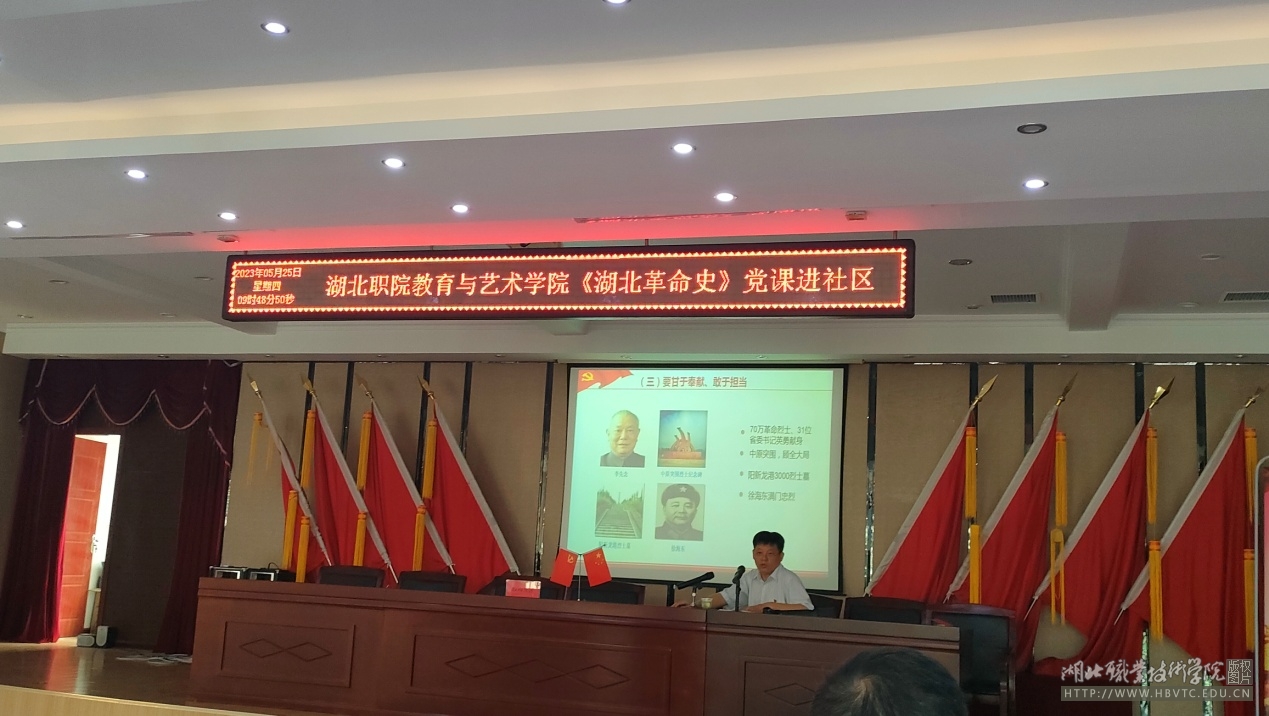 (本网讯 通讯员:孙维国)为大力弘扬“敢为人先,追求卓越”的湖北精神,传承湖北务实重行、真抓实干的历史传统,为建设全国构建新发展格局先行区凝心聚力。5月25日,教育与艺术学院党总支书记张源、副院长陈胜华、张玮一行前往新华街道沙沟社区开展“党建联建+送党课进社区”主题活动。