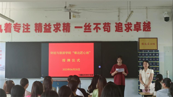 杨晶校友与22040102班班长进行了“维达匠心班”授牌交接,班长代表全班同学发言。校友杨晶结合自已成长之路,为同学们作一场精采的“匠心精神”专题讲座;辅导员黄曙光表示,带领全班同学全方位实施工匠育人,努力打造匠心品牌,把同学们培养成为新时代的“工匠人”。