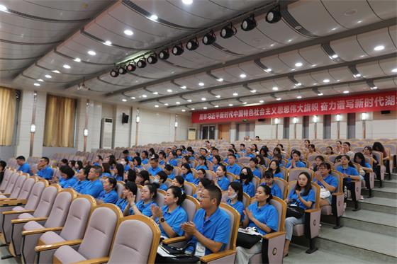 王小平讲话,对孝感经济文化和职业教育发展进行了介绍,强调教师素养提高的重要性,期望学员要珍惜学习机会,学以致用,将学习成果在工作岗位中落地生根,开花结果。