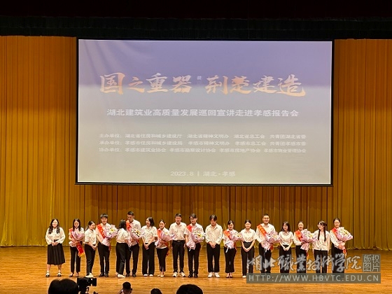 为深入学习贯彻党的二十大精神,扎实开展习近平新时代中国特色社会主义思想主题教育活动,展示大国建设成就,展现建筑企业风采,讲好建设者故事,省住房和城乡建设厅、省精神文明办、省总工会、共青团湖北省委联合开展“国之重器·荆楚建造”湖北建筑业高质量发展巡回宣讲活动。8月30日下午,湖北建筑业高质量发展巡回宣讲走进孝感报告会在市行政会议中心礼堂隆重举行,湖北职院建筑工程学院20名师生代表参加了报告会。