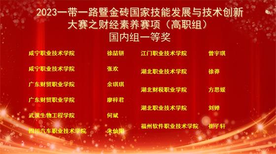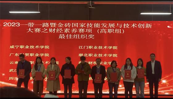 (本网讯 郑敏)11月24日至25日,2023第七届“一带一路”暨金砖国家技能发展与技术创新大赛之财经素养赛项总决赛(高职组)在湖北咸宁举行,经过激烈角逐,财经与旅游学院王敏、魏竹寒老师指导徐莽、刘婵同学荣获一等奖,我校获最佳组织奖。