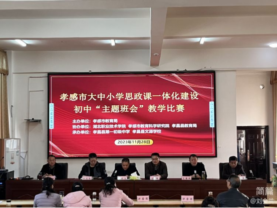 (本网讯 张司南)为全面贯彻党的二十大精神和党的教育方针政策,推进大中小思政教育一体化建设,落实立德树人根本任务,11月27日—29日,由孝感市教育科学研究院主办,九州线上平台、孝昌县教育局协办,孝昌县第一初级中学和孝昌县文源学校承办的孝感市思政主题班会教学比赛(初中组)成功举行。