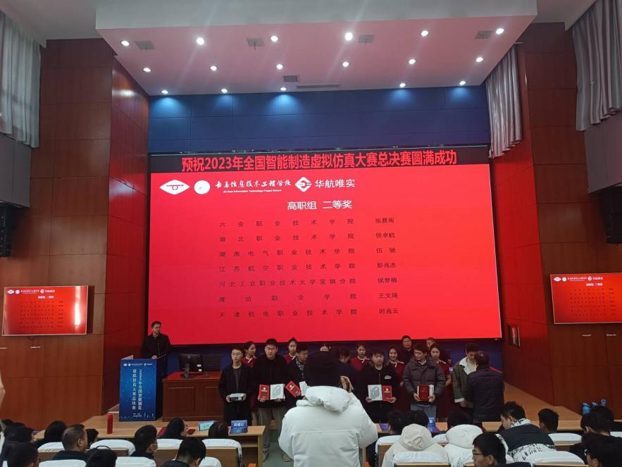 (本网讯 胡友前 )12月22日-24日,2023年全国智能制造虚拟仿真大赛总决赛在嘉善信息技术工程学校举行,我校机电工程学院学生张子衡、徐卓航在谢超明、胡友前老师指导下,分别获全国一等奖(第3名)、全国二等奖(第6名)。