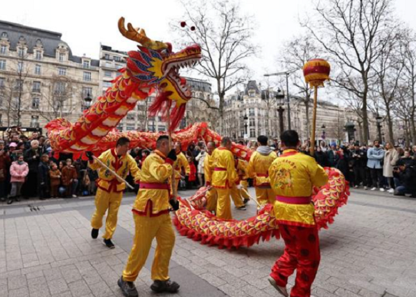 在美国纽约,中国龙形文物巨幅海报亮相时报广场,向全球人民献上新春祝福。在新西兰,总理拉克森在奥克兰参加“新春花市同乐日”活动,与当地华人共迎新春。在毛里求斯首都路易港,该国副总理胡斯努与众人敲响锣鼓,共同启动“欢乐春节”花车巡游。在法国巴黎香榭丽舍大街,长长的舞龙在龙珠引导下上下翻飞,博得阵阵喝彩。游客让-巴蒂斯特说,世界各地都在庆祝春节,因为春节带来的快乐能“感染所有人”。