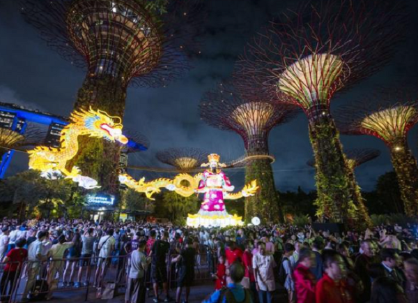 2024年是中法建交60周年和中法文化旅游年,国家级非物质文化遗产豫园灯会作为主打活动之一,迎来它的首次“出海”之旅。60个大型灯组、2000余盏彩灯流光溢彩,为巴黎风情园增添了浓郁的东方色彩。特别是在“山海有灵”展区,“龙”成为这里的主角,飞龙、盘龙、双龙戏珠等彩灯栩栩如生。