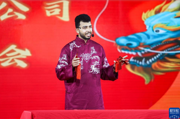 在墨西哥首都墨西哥城举行的中国新年文化节上,中墨表演艺术家齐聚一堂,与当地民众共迎甲辰龙年。伴随悠扬的古琴声,一位中文名叫顾品鸿的墨西哥小伙与当地民众围坐在一起,他熟练地将茶叶放入紫砂壶,不一会儿屋内就茶香四溢。“茶字上面是草,中间是人,下面是木。墨西哥也有使用草药的悠久历史,两国共享人与自然和谐共生的理念。”他说。