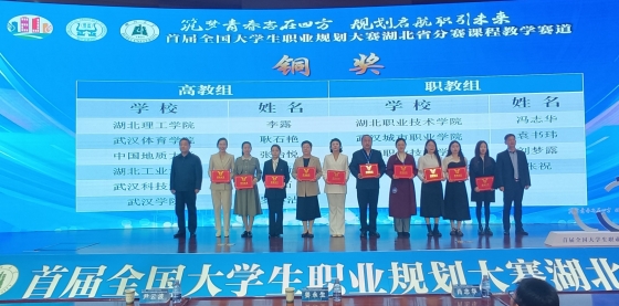 (本网讯 通讯员:聂静)3月14日,由湖北省教育厅主办的首届全国大学生职业规划大赛《职业发展与就业指导》课程教学赛道湖北省赛在湖北大学圆满落幕。本次大赛分高教组和职教组,全省三十多所高职院校的就业指导课程教学团队参加了职教组的比赛。经过激烈角逐,我校公共课部教师冯志华以第5名的成绩荣获铜奖。