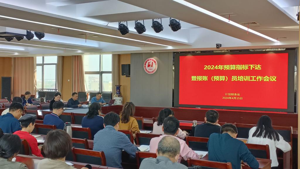 (本网讯 程军)4月15日下午,学校在图新楼601会议室召开2024年预算指标下达暨报账(预算)员培训工作会议,计划财务处处长舒文舟主持会议,学校各职能部门报账(预算)员参加了会议。