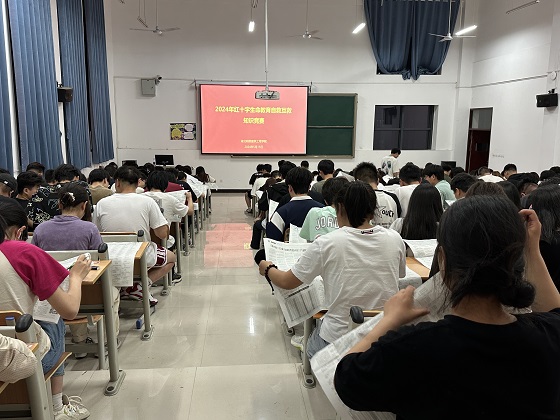 (本网讯 张天柱)5月15日,建筑工程学院在南区知行楼8424阶梯教室,组织学生开展2024年红十字生命教育自救互救知识竞赛。