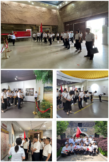 第二站,湖北省精准扶贫试点示范单位——孝感大悟金岭村。在讲解员的带领下,参观了红色驿站、快递超市、颜回书院、农耕文化园、红色记忆小屋、“闻一知十”书院学堂、古门楼等地。对比今昔,金岭村在党的带领下从一个贫穷落后的小山村建设成年产值近千万的现代示范村,变化天翻地覆。护理学院全体党员在这里对着党旗重温入党誓词,深入开展支部主题党日活动。在教师党支部书记田樱同志带领下,全体党员学习了《党章》《习近平总书记为第六批全国干部学习培训教材所作<序言>精神》、贯彻了《中国共产党纪律处分条例》及党委书记郭国文同志在学校4月份党建与思政工作例会上的讲话精神等内容。 校党委副书记、校长郭沙同志希望护理学院党总支以此次支部主题党日活动为契机,筑牢理想信念之基,补足精神之钙,勇创争先,敢于开拓,充分发挥党员先锋带头作用,为学校发展作出更大贡献。