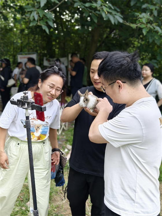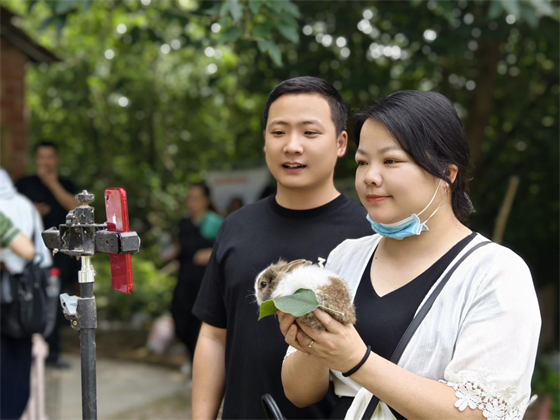 (本网讯宋巍)“王老师,这是我直播卖出去的第一只兔子!……”在财经与旅游学院电子商务专业宠物兔养殖基地现场实训课堂上,电子商务专业(一村多)学生蒋春凤兴奋地对企业兼职教师王乙龙说着刚刚在抖音直播的体会和感受。