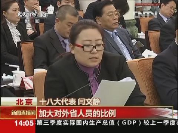 闫文静在北京参加中国共产党第十八次全国代表大会