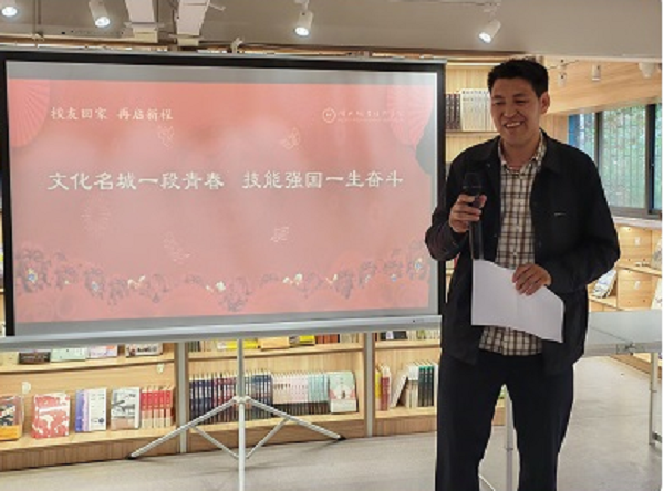 2024年4月19日,周拉才让在湖北职院石榴红文化基地作报告
