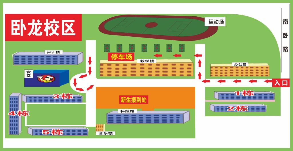卧龙校区位于孝南区南卧路64号,距南校区几分钟车程。