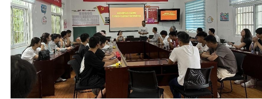 村党支部书记万新伟介绍了乡村建设与发展情况、新规划设计与改造的目标与建议,驻村书记高俊强带领师生实地考察勘测了张湾、大湾、下细冲。专业教师谢勇根据学生实际情况,将学生分为六个大组,以“推进和美乡村建设”为主题,以送“设计下乡”为抓手,引导学生发挥专业特长,大胆创新,对村农业产业基地、油茶深加工项目基地、农业合作社、农家书屋、生态种植园等建筑进行创新设计与改造,涵盖了乡村居住空间、公共空间、环境与景观优化、规划与布局等实际应用方向,旨在培养学生的独立思考能力、实践操作能力和解决问题的综合素养能力。