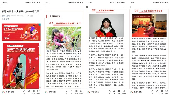 谭之平将志愿服务作为她生活中必不可少的重要部分,从2007年以来,她先后到全国各地演讲300多场,传播孝文化,倡导志愿者精神,带动更多的人行孝感恩、敬老助老。她把孝感市奖给她的孝子奖金捐出来,发起成立感恩文化基金,用团队的力量、基金的渠道,让更多的贫困学子分享资助。湖北职院发起成立武汉都市圈志愿者联盟,更多的同学自发地集聚到她的周围。