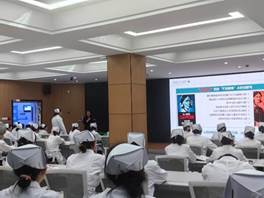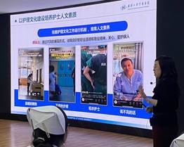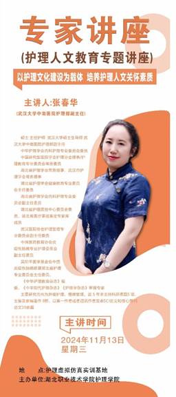 专题讲座环节,张春华以“以护理文化建设为载体 培养护理人文关怀素质”为题,通过护理先进人物故事、生动的视频案例等,向同学们详细介绍了武汉大学中南医院坚持以病人为中心,以奋斗者为本,将护理人文关怀贯穿全生命周期的文化内核。强调了护理文化管理与文化建设的重要性,希望同学们胸怀大爱之心,做时代新人,做好护理服务中每一件小事,用南丁格尔之灯,照亮生命之光,学习爱、创造爱、分享爱和给予爱。