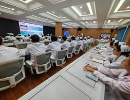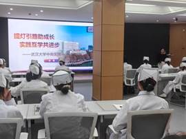定薇以“提灯引路助成长 实践互学共进步”为题,从医院临床教学管理、临床实践实施、特色教学活动和行为礼仪规范四个方面详细介绍了武汉大学中南医院在实习生管理、评教评学、基础技能培训、专科护理培训、学生特长展示、学生职业规划等方面的具体举措,还现场就护理行为礼仪规范与学生进行了积极互动,学生踊跃参与,现场气氛热烈。