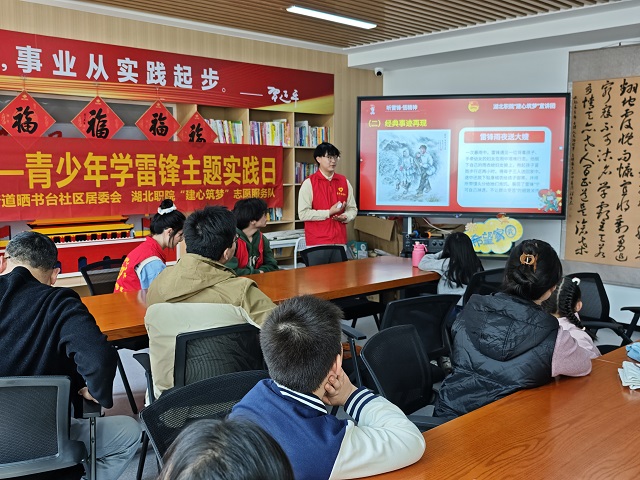 (本网讯 张天柱)为弘扬新时代雷锋精神,培育青少年志愿服务意识,3月22日下午,建筑工程学院联合孝南区广场街道晒书台社区,在社区二楼书山居开展“雷锋少年绘青春,志愿达人我先行”主题实践活动,吸引辖区青少年积极参与。