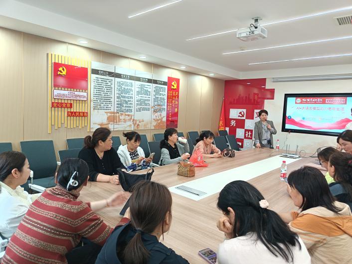 活动中,教师党员冯乐、吴小燕以“AI助力中老年生活”为题,向中老年居民展示AI技术在智慧养老、医疗咨询、辅助隔代教学、赋能音乐摄影创作等场景中的广泛应用。