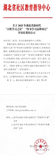 (本网讯 陈胜华 郁青)近日,经市州初评、省社区教育指导中心复评,教育与艺术学院“花样雕琢,嵌入流金岁月——孝感非遗雕花剪纸项目”获评湖北省新时代“终身学习品牌项目”,并被推介参评2025 年全国新时代“终身学习品牌项目”。