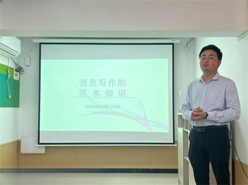 (本网讯 曾嘉茵 覃业冰)4月10日下午,财经与旅游学院在东区一站式学生服务中心举办了以“生成式人工智能在新闻写作中的应用”为主题的培训活动。活动由“罗盘导航”辅导员工作室成员王亚军老师主持,财经与旅游学院团总支宣传部和部分写作爱好者参加了此次活动。