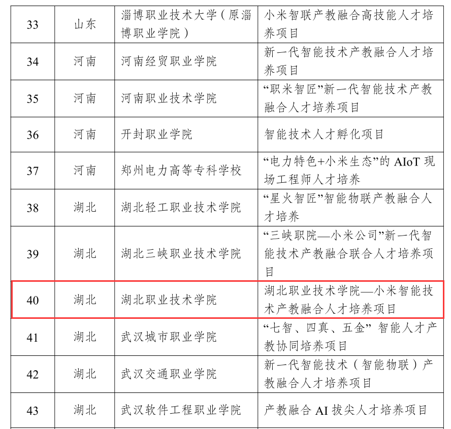 (本网讯 唐娟)近日,教育部职业教育发展中心公布了2025年度新一代智能技术产教融合促进项目入选名单,由对外合作交流处指导、信息工程学院申报的“九州线上平台-小米智能技术产教融合人才培养项目”成功入选。