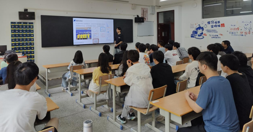 (本网讯马文豪)大赛点亮人生,技能成就梦想。为进一步激发学生参赛热情,助力学生技能成长,5月18日上午,信息工程学院举行了“星火相传共筑荣光——优秀校友备赛经验分享和交流活动”,邀请2022和2023年全国职业院校技能大赛二等奖获得者、2023届优秀毕业生杨新浩作备赛经验分享和交流。信息工程学院院长潘志安、副院长吴春花、备赛指导老师代表、2025年全体备赛学生及工作室学生代表等参加活动。