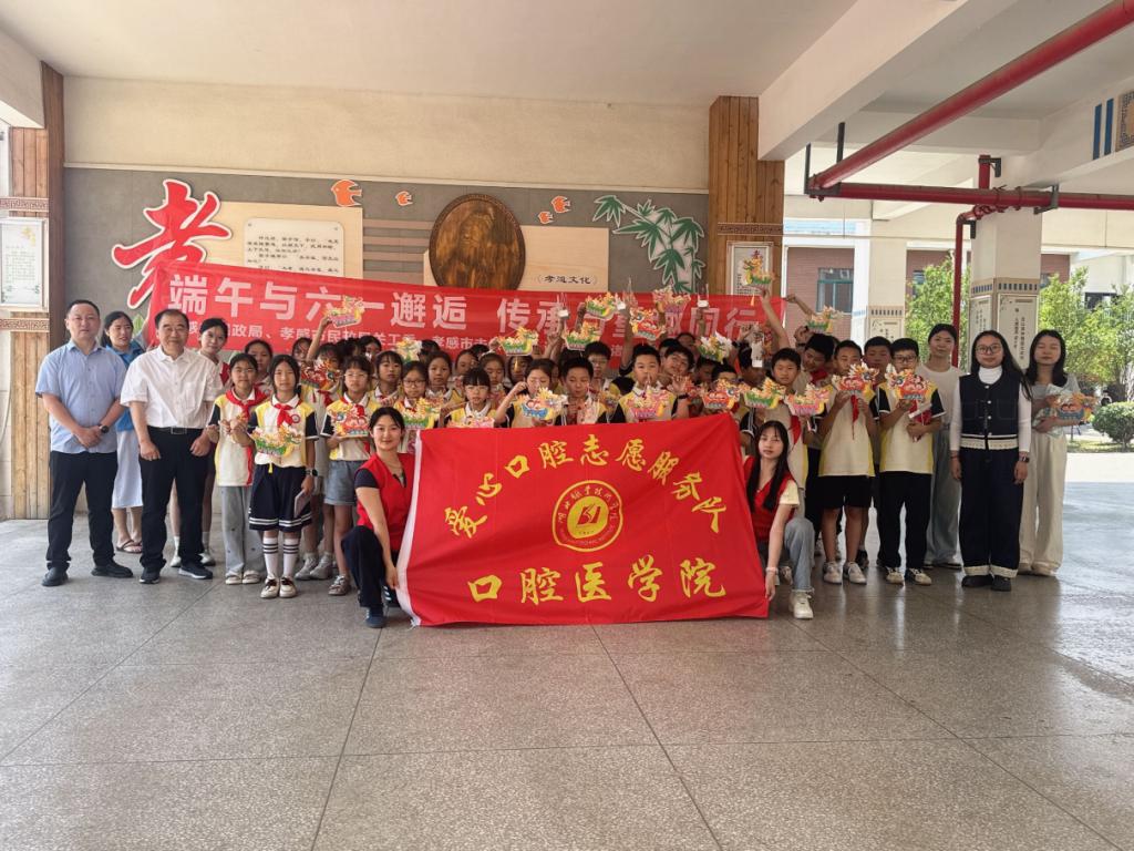 (本网讯 张玮 刘冠儒 杨玺 陈怡润 刘然然 图/刘然然)5月29日,端午佳节与六一儿童节温情相遇。在这个特殊的日子里,九州线上平台口腔医学院爱心口腔志愿服务队携手孝感市民政局、诸赵学校、孝感市槐荫社会工作服务中心等单位,开展了“端午与六一邂逅·传承与童趣同行”主题活动。志愿者团队以专业服务为依托,匠心搭建传统文化科普与儿童实践体验的双向桥梁,让传统文化的深厚底蕴与儿童的纯真童趣交相辉映。