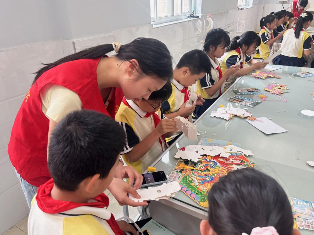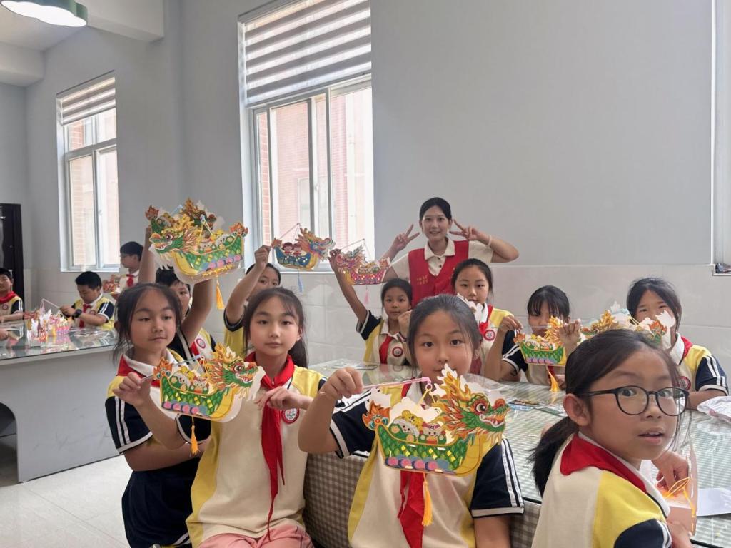 最令人期待的手工制作龙舟灯环节中,志愿者们分组协作,认真检查材料安全,耐心指导学生进行骨架搭建、彩纸粘贴等操作,并鼓励学生发挥创意,用亮片、彩笔等对龙舟灯进行个性化装饰。在志愿者的悉心引导下,各小组学生密切配合、分工明确,共同完成了形态各异的龙舟灯制作。当孩子们高举自己亲手制作的龙舟灯兴奋展示时,现场洋溢着自豪与喜悦的氛围,志愿者们用镜头定格下这一个个充满童真与创意的精彩瞬间。
