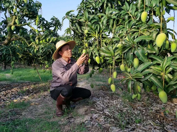 (林日云在产业基地检查作物生长情况)