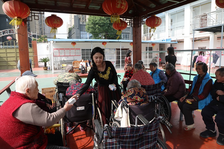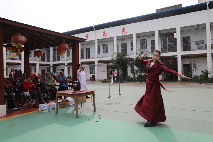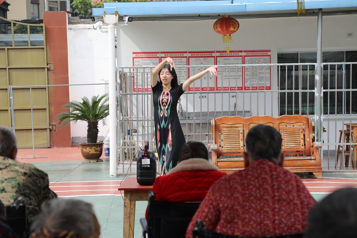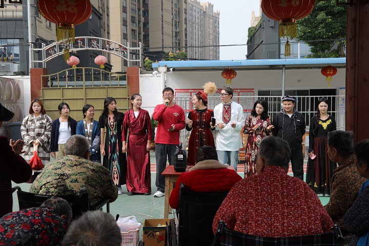 上午十时许,城西社区福乐养老院广场其乐融融。“敬爱的爷爷奶奶,我们来陪您们过节啦!”阿依舒阿克·金克斯的问候拉开活动帷幕。