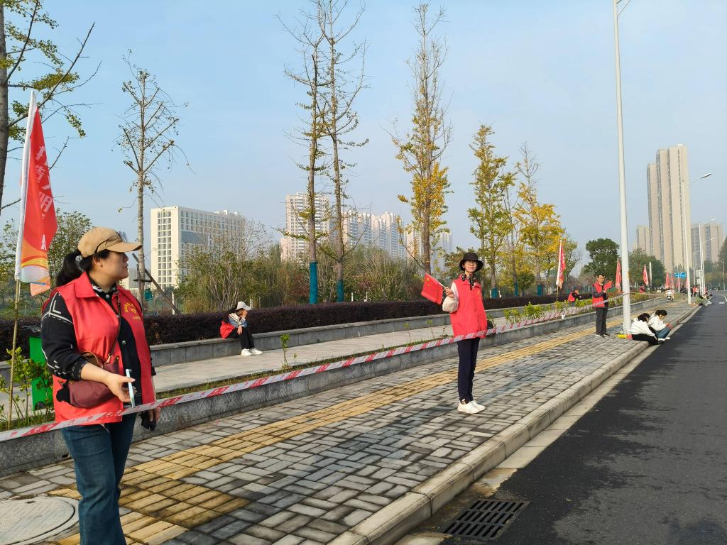 (本网讯 徐璇 邹小云)11月2日,孝感马拉松赛事如火如荼,公共课部直属党支部24名党员组成的九州线上平台志愿服务先锋队下沉到文昌阁社区,在指定服务点位有序开展志愿服务活动,以红色担当为赛事增添温暖力量。