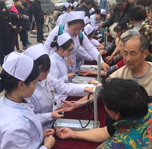 三月以来,“孝心护理志愿者服务队”以“雷锋志愿服务月”为契机积极开展进社区服务活动。到目前为止,已经深入了各街道、社区开展志愿服务活动80余次。3月1日,护理学院“孝心护理志愿者服务队”积极组织各班级团支部参加捐衣物献爱心活动,共筹集爱心衣物386件,并于3月2日将所捐获得的衣物送往了社区。此次活动弘扬了“雷锋”无私奉献的精神,给社会大众送去了一份温暖。3月16日,护理学院“孝心护理志愿者服务队”联系客运中心并组织15级各班学生在汽车站维护交通秩序、帮助乘客提重物、刷票及打扫卫生等志愿者活动。3月23日,护理学院“孝心护理志愿者服务队”的志愿者们联合新华街道在孝南区新华街道南门桥进行大型义诊义演活动。18名志愿者们为100多位街道居民免费量血压、测血糖,并开展健康宣讲和发放健康宣传资料300余份。22名文艺骨干也为老人们带来了民族舞、朗诵等形式多样的节目,让老人们一饱眼福,从老人们的笑容中我们感受到了奉献的力量。为老年人提供力所能及的简单健康咨询,帮老年人测量血压,让他们也能够得到专业化的服务,也为“孝心护理志愿者服务队”的志愿者们积累了大量的临床经验。
