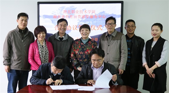 在大家的共同见证下,副校长李佳圣代表学校与湖北省教育自费留学中心负责人共同签署了合作协议。